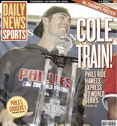 Philadelphia Daily News 10/16/08 – Back Page “Cole Train!”